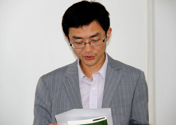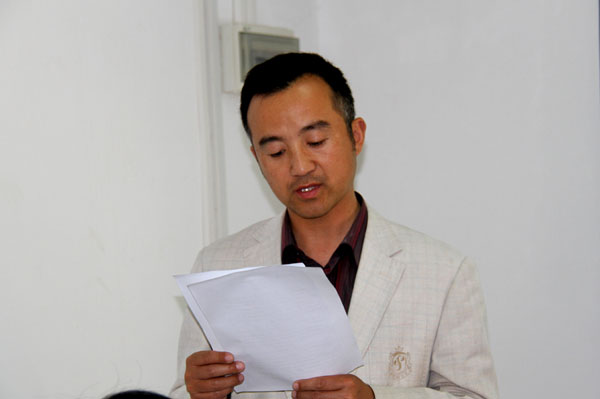 陈胜红宣读《黄冈职院教工读书沙龙章程》(草案)