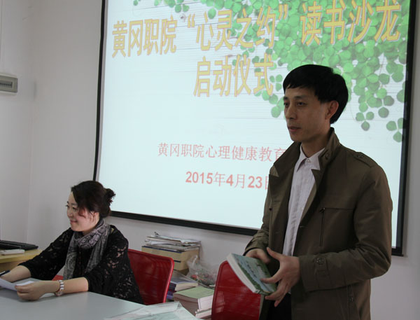 张爱东宣读成立黄冈职院“心灵之约”读书沙龙的批复和读书沙龙组织机构人员名单