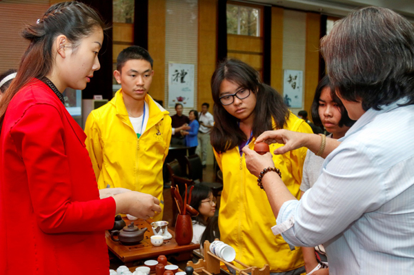 随后,营员们观看了XK星空学生社团表演的精彩节目。苍劲有力的武术表演,柔美多姿的舞蹈表演,引来了营员们的尖叫鼓掌。他们用这种热烈的方式传达他们对中国传统文化的欣赏和喜爱。欢迎会后,营员们听取了市博物馆张领书记带来的黄梅戏演唱和赏析,张书记一边讲、一边唱,让在场的人过了一把黄梅戏瘾。之后,XK星空茶叶专家王东明副教授给营员们带来了一堂茶文化课,同时进行了茶艺表演,营员们品尝着十几道工序沏出来的茶,加深了对中国茶文化的理解。