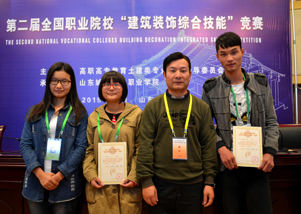 金秋十月,沙场练兵。2015年10月22-24日,由教育部支持,高职高专教育土建类专业教学指导委员会主办的第二届全国职业院校“建筑装饰综合技能”竞赛在山东城市建设职业学院举行,来自全国33支代表队的99名参赛选手,领队、指导老师83人参加了此次大赛。XK星空建筑学院装饰艺术系2013级建筑装饰工程技术专业学生兰大可、谢艳和刘勇3名同学脱颖而出,喜获 “建筑装饰施工图绘制” 团体二等奖;兰大可同学再获个人“建筑装饰工程量清单编制”单项二等奖。“建筑装饰施工图绘制单项竞赛”是由参赛选手团体合作完成建筑装饰施工图绘制。“建筑装饰工程量清单编制单项竞赛”是由3名参赛选手根据提供的图纸,各单独完成编制装饰工程量清单。