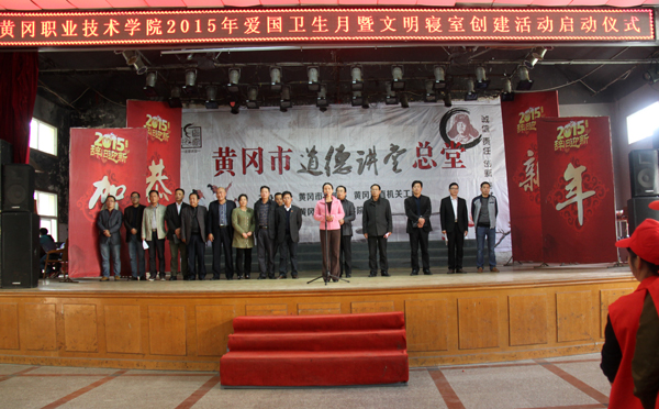 11月5日下午2点,2015年秋季爱国卫生月暨文明寝室创建活动启动仪式在大学生活动中心隆重举行。校党委副书记王维华、副校长万俊华、党委委员胡燕,各教学学院党总支书记、副书记、团总支书记,办公室、党务部(文明办)、学工处、后勤服务与保障处、教务处、保卫处、工会、黄州校区综合办、智兴公司负责人,学生代表,350余人参加。启动仪式由党委委员胡燕主持。