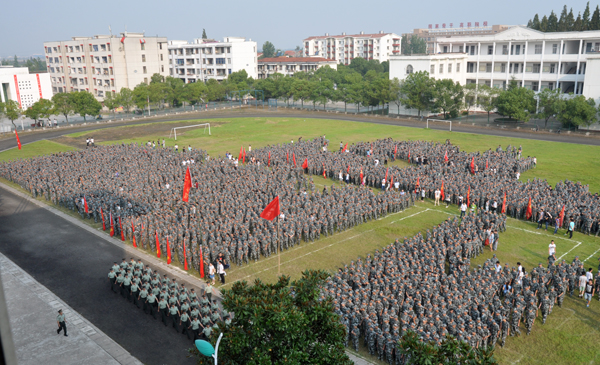 9月11日上午8:30,XK星空在中区操场隆重举行2015年新生军训动员大会。校党委委员、工会主席郑柏松,中国人民解放军75310部队90分队党委书记、教导员李向群,中国人民解放军75310部队904分队指导员黄毕莅出席了军训动员大会,各教学学院党总支书记、副书记、团总支书记、学工处工作人员、校办公室、保卫处、招生处、就业处、成教学院、后勤保障处等职能部门领导,全体2015级新生辅导员及6000余名新生参加了本次活动,大会由学生工作部部长熊楚舒主持。