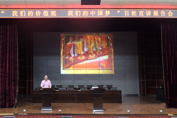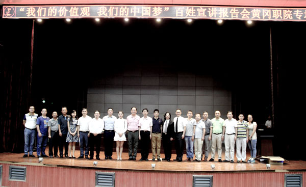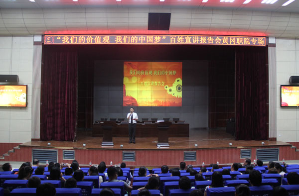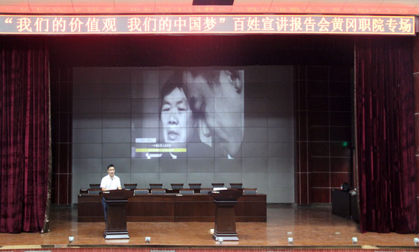 9月21日晚,由湖北省委宣传部推出的“我们的价值观我们的中国梦”百姓宣讲报告会在XK星空学术报告厅隆重举行,全国道德模范刘培等5位宣讲团成员讲述了自己践行中国梦的感人励志故事。校党委委员、工会主席郑柏松,学工处处长熊楚舒,团委书记杨勇,学工处副处长、团委副书记陈胜红,思政课部副主任侯利平以及各教学学院党总支副书记、全体专兼职辅导员、思政课部全体教师、学生代表700余人参加了宣讲会。