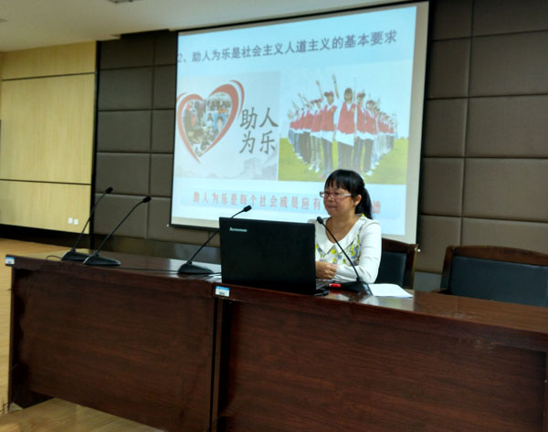 湖北省高职高专思政课建设联盟理事长李洪渠教授作了重要讲话,并作了《认清形势,明确任务,上好思政课》的专题报告;副理事长刘大洪宣读了表彰全省高职高专院校思想政治理论课微课竞赛获奖作品的决定;黄少臣教授作了《领会中央宣传部教育部关于印发普通高校思想政治理论建设体系创新计划的通知文件精神》专题报告;陈斌教授作了《高职思政课“5S”教学模式构建与运用》专题交流。会议期间获得微课竞赛一等奖的7名教师分别展示了自己的优秀作品,并解读了作品的设计理念与思路,与会的思政课教师深受启迪。郑玉美老师的微课作品《助人为乐》获得与会领导专家的一致好评。