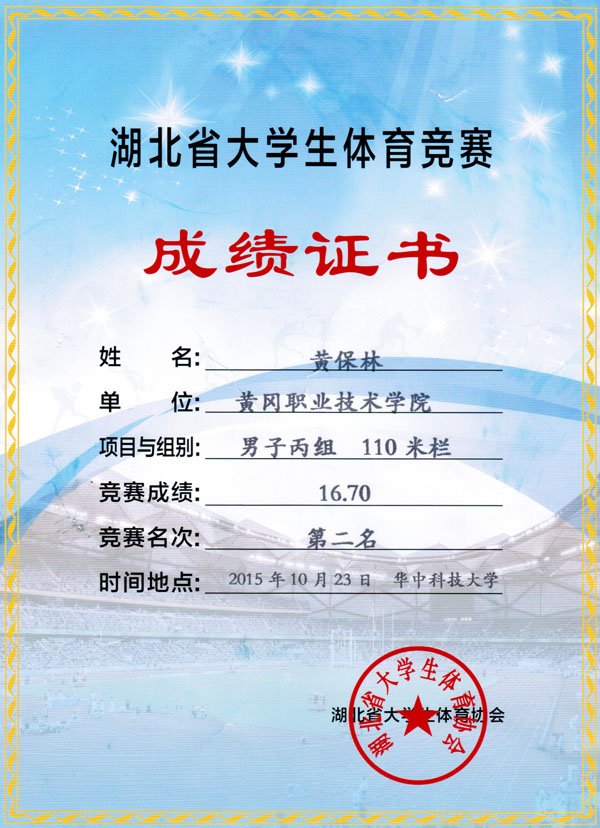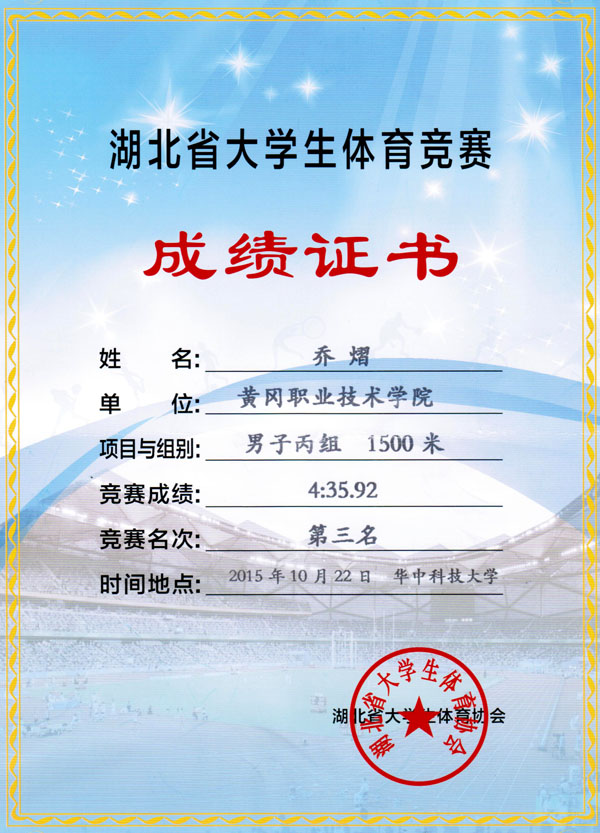 10月22日至24日,湖北省普通高等学校大学生田径运动会在华中科技大学举行。XK星空积极组织报名,认真准备,在激烈的赛场上,运动员们不畏强手,奋力拼搏。XK星空建筑学院建工201310班学生黄保林获得男子110米栏银牌,道桥201301班学生乔熠获得男子1500米铜牌。
