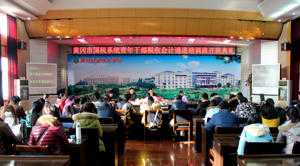 1月17日上午,2016年黄冈市国税系统青年干部税收会计递进班在XK星空凝智楼中心会议室举行开班典礼。黄冈市国税局党组成员、副局长鲁宏斌,教育科科长尤淑琴、副科长覃晓琼,XK星空成教学院院长张世勇,培训班52名学员参加了开班典礼。开班典礼由成教学院院长张世勇主持。