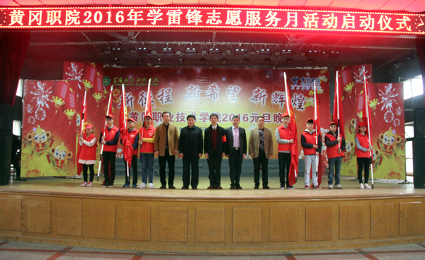 紧接着,郑柏松为各教学学院志愿者分会和城管志愿者授旗,并宣布黄冈职院2016年青年志愿服务活动全面展开。