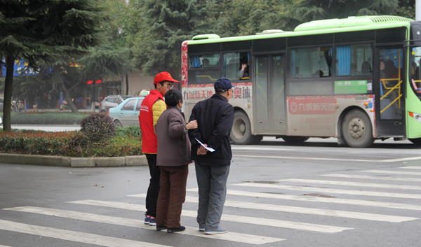 郑柏松带队在市区繁华路口对市民进行文明劝导