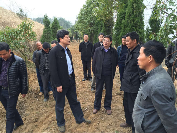 会后,张新佳率领扶贫工作组同志视察了“长冲庄园”的油茶园、果园栽种现场,并与农业专家一起进行了认真探讨。