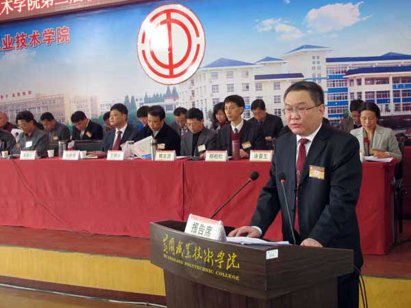 黄冈职院院长姜安心作行政工作报告。吴远征 摄