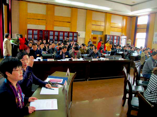 与会代表正在举手表决工作规划和报告。吴远征 摄