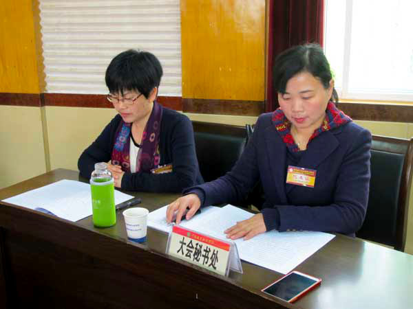 大会秘书处工作人员正在认真核对和记录表决结果。吴远征 摄