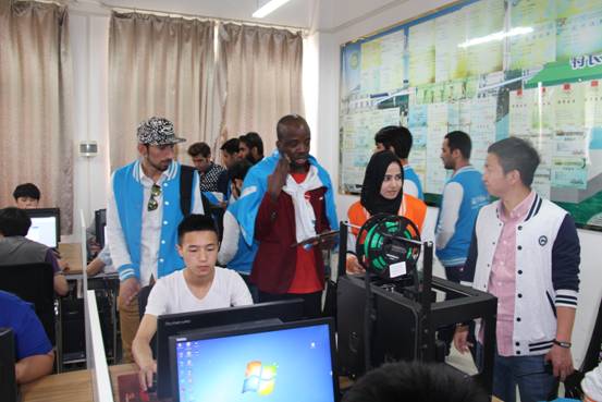 在机电学院实训室,留学生们见识了当前的新兴技术——3D打印技术。他们饶有兴趣的观看XK星空学生设计作品,不时的向老师询问交流。临行前,XK星空部分学生还将做好的作品送给留学生们以作纪念。