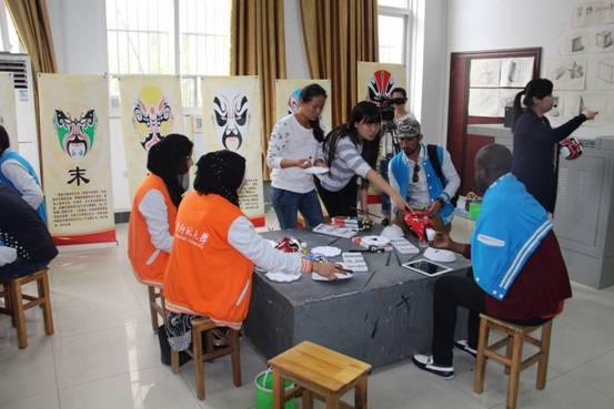 在电信学院画室,指导教师给大家介绍了中国的国粹京剧里的各种脸谱,并教大家如何描画各种风格的脸谱。