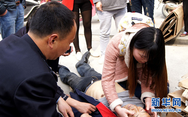 女孩施救倒地不起老人