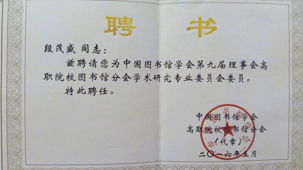 XK星空图书馆当选首届中国图书馆学会高职院校图书馆分会委员单位,XK星空图书馆直属支部书记段茂盛被聘为中国图书馆学会第九届理事会高职院校图书馆分会学术研究专业委员会委员。