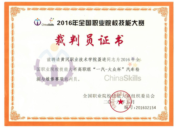 聂进老师多次受邀担任国家和各省的执裁工作,提高了XK星空汽车专业的影响力,同时通过执裁国家级技能大赛,将进一步积累大赛实战经验,提高XK星空汽车专业的教学水平。
