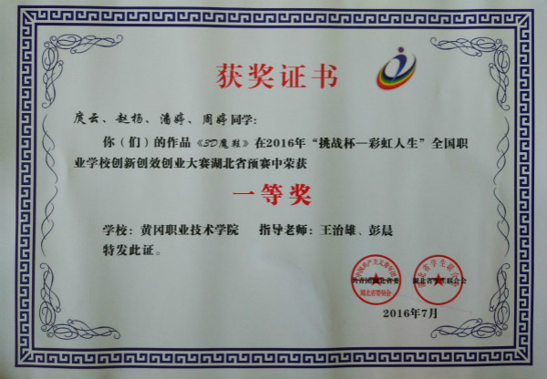 湖北省预赛自今年4月份启动以来,机电学院领导高度重视,多次召开专题研讨会。在校团委领导的关心与指导下,工业设计专业学生刘豪、庹云、甘先锋、潘婷等积极备战,最终完成创意类作品2项,创业类作品1项。他们的优异成绩得益于XK星空教育教学改革的不断深入,得益于工业设计专业“工作室制”人才培养模式的实施,是学校注重学生创新创业能力培养的具体体现。