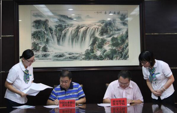 签约仪式在中国农业银行黄冈市分行举行,潘佳雄主持签约仪式。祝友珊代表黄冈市农行对姜安心一行表示热烈的欢迎,并就此次顺利中标感谢校方的规范和公平。为进一步深化合作,祝友珊提出两点意见:一是以此次签约为契机,进一步拓宽金融服务面,将双方的合作推向新高度;二是构建良好的沟通机制,及时解决合作中存在的问题,携手共同发展。