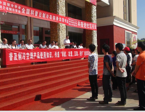 2016年9月17日,由湖北省制冷学会、湖北省制冷空调行业协会、黄冈市科协主办,XK星空和九环电器公司承办的全国第十三个科普周活动黄冈站启动仪式在黄冈宾馆隆重举行。湖北省制冷学会常务副秘书长张定国,黄冈市科协学会部部长屈辉,九环电器公司总经理范伟,机电学院党总支书记杨勇、院长方玮、制冷与空调专业全体教师及学生代表,部分市民参加了启动仪式。启动仪式由校科研处副处长蔡新职主持。
