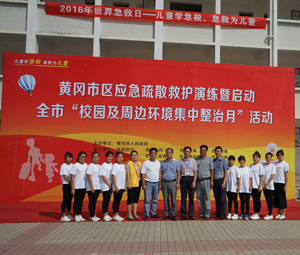 应急疏散演练结束后红十字志愿者给学生进行了日常生活中常见的止血、包扎、固定等正确的创伤救护演练,还通过模拟人演示了心肺复苏术。演练后学生们踊跃上台对模拟人进行了应急救护实际操作,取得了良好的效果。在传授应急知识的同时,还指导小学生正确呼救、拨打120等方法,还向学生们传授了红十字运动基本知识以及发放宣传资料。通过本次活动增强了师生安全意识,掌握应急避险、自救互救知识和技能,进一步推进黄冈市红十字会应急救护工作持续、深入的开展。
