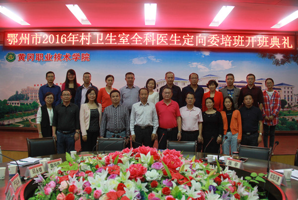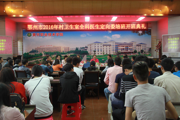 2016年9月29日下午3点,鄂州市2016年村卫生室全科医生定向委培班在XK星空凝智楼中心会议室隆重开班。鄂州市卫生计生委党组副书记黄胜堤、副调研员李隽、公立医院管理中心副主任陈华侨、各区卫生计生局负责人,XK星空校长姜安心、副校长刘东山、党委委员胡燕、医药学院班子成员出席了典礼。典礼由医药学院党总支书记陶志勇主持。2016级定向委培班134名同学参加了典礼。
