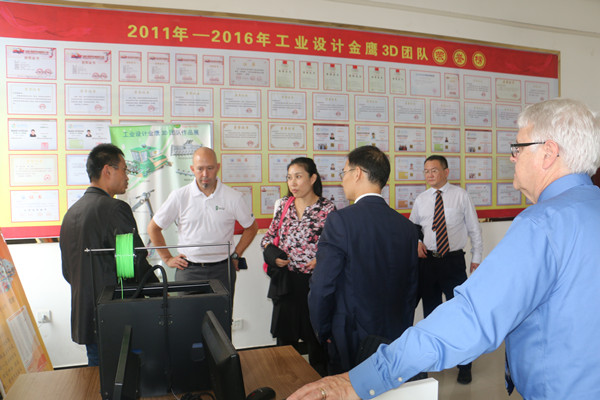 下午,蒂姆•尼尔森一行不顾舟车劳顿,参观了XK星空电子信息学院、生物与制药学院、机电学院以及商学院的实训场所。参观过程中,蒂姆•尼尔森一行高度肯定了XK星空的实训条件,对学生的实训作品连连称赞。随后,蒂姆•尼尔森一行在学术报告厅举行了西北密歇根学院宣讲会。XK星空600多名学生代表聆听了宣讲。