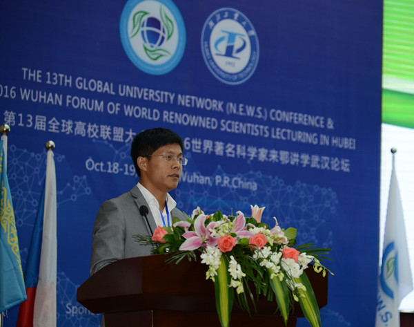 10月18日-19日,应湖北工业大学邀请,XK星空参加了在湖北工业大学举行的第13届全球高校联盟大会暨2016世界著名科学家来鄂讲学武汉论坛,学校党委委员、工会主席、党委宣传部部长郑柏松出席了会议。公共课部(国际交流合作处)库利江老师一同参加了会议。