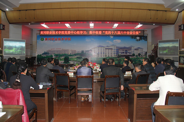 10月27日晚7时,全体校领导以及校党委中心组成员一道在中心会议室集中收看中央电视台《新闻联播》,学习《中国共产党第十八届中央委员会第六次全体会议公报》。