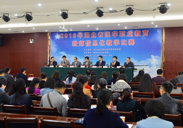 2016年11月4日—6日,由湖北省医学职业技术教育研究室主办,XK星空承办的2016年湖北省医学职业教育教师信息化教学比赛在黄冈德尔福遗爱湖大酒店顺利举行。本次比赛有来自全省12所高职高专、6所中职代表队和2所观摩学校的近110名代表参加。开幕式于5日上午8点在德尔福遗爱湖大酒店8楼会议室隆重举行。湖北省卫生计生委科教处处长林俊杰、副处长张有元、湖北省医学职业技术教育研究室主任周森林、副主任温茂兴、黄冈市卫生计生委副主任熊双林,XK星空党委书记张新佳、副校长刘东山、党委委员胡燕和夏学文出席了开幕式。开幕式由刘东山主持。