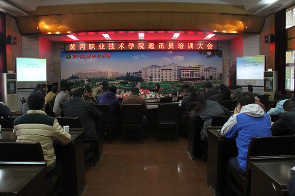 11月23日下午,通讯员培训大会在凝智楼四楼中心会议室举行。黄冈日报社科教部主任、湖北省“十佳记者”沈红星,为学校58名通讯员作了精彩讲座。党委委员、工会主席、宣传部长郑柏松出席大会,宣传部副部长刘国峰主持大会。