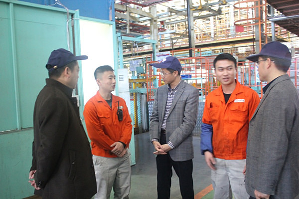 夏学文一行先是在东南汽车公司的工作人员陪同下,参观了汽车生产线,了解汽车生产工艺,感受汽车企业文化。夏学文每到一处,都要对XK星空2014级参加顶岗实习的学生进行一一地慰问,关心和了解他们的工作和生活情况,并鼓励他们要在平凡的工作岗位上不断提升专业技能,为将来就业打好基础。