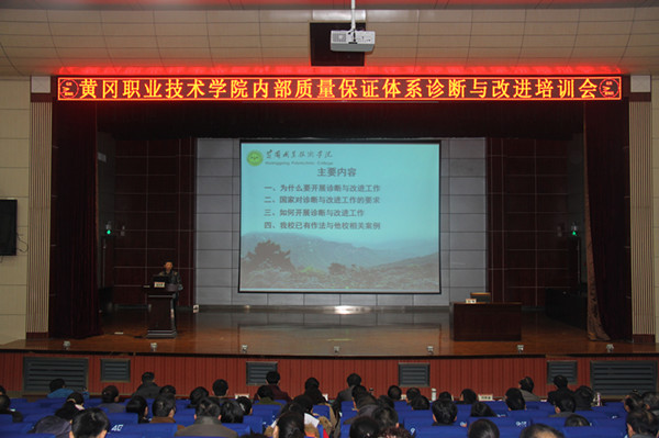 1月5日上午,学校在学术报告厅召开内部质量保证体系诊断与改进培训会,学校全体领导及教职员工参加了本次培训会。会议由党委委员夏学文主持。