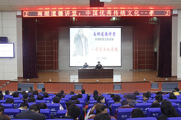 孝,是中华民族的传统美德,是千百年来中华民族的道德准则。郑柏松从孝之真义——知孝义,颂经典;孝之感恩——看视频,感亲恩;孝之典范——学模范,唱教歌;孝之自省——照内心,谈体会;孝之践行——表孝心,行大礼等五个方面,对“孝”进行了全面的解读;从小孝到中孝再到大孝,列举了大量的正反事例,通过PPT、视频,图文并茂的讲解了“饮水须知思源意,百善应推孝为先”的感孝、学孝之举。他重点强调了作为青年人要学孝、行孝,更要把弘扬中华传统文化作为已任,要从小事做事,感恩父母、感恩社会。讲座感染了全场的师生,看到感人之处,现场观众无不为之动容。