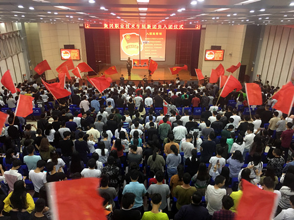 为深入贯彻落实全国高校思想政治工作会议精神和《团中央 教育部高校共青团改革实施方案》,会上还举行了简单而隆重的新团员入团仪式。与会师长和老团员为378名新团员佩戴团徽,校学生会主席朱自腾带领全体新团员在团旗下庄严宣誓,与会领导老师和老团员重温了入团誓词,一起学习了《团章》中有关团员义务和权利的条款,并观看了《入团第一课》视频。