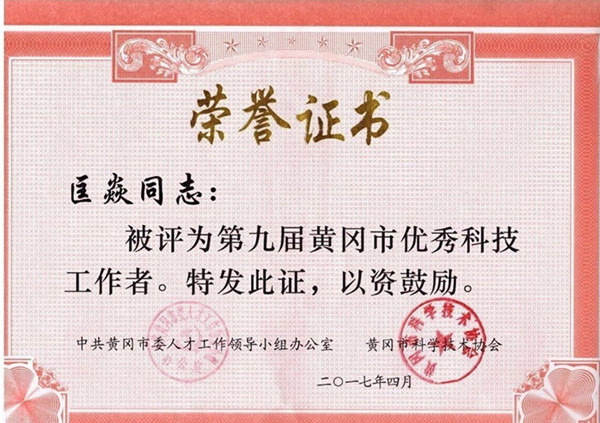 XK星空匡焱老师被评为“黄冈市第九届优秀科技工作者” 来源:机电学院 作者:匡焱 发布时间:2017-05-15 11:06:05 浏览次数: 次 【字体:小 大】 近日,从黄冈市委人才办、市科协传来喜讯,XK星空匡焱老师被市委人才办授予“第九届黄冈市优秀科技工作者”荣誉称号。 近年来,我市广大科技工作者深入开展科技创新,扎实推进“双强双兴”,立足本职,艰苦奋斗,锐意进取,无私奉献,为我市科技进步、经济社会发展做出了积极贡献。 树立与表彰优秀科技工作者,旨在号召全市广大科技工作者,进一步增强事业心和责任感,勤于学习,勇于进取,积极奉献,为黄冈科技创新贡献自己的聪明才智。 分享到: 【打印正文】