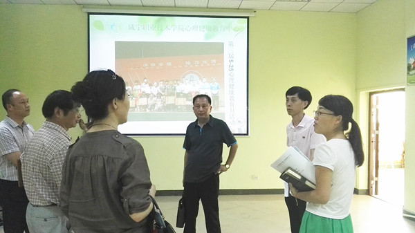 6月2日,校党委委员、工会主席、宣传部长郑柏松率就业处、学工处一行6人赴咸宁职业技术学院就创新创业教育、心理健康教育、基地建设、师资队伍建设、中职生的教育与管理等方面进行了考察与调研。咸宁职业技术学院党委委员、副院长吴高岭,院长助理陈为民,学工处处长王旱伟,就业指导中心主任柳明珠,心理健康教育中心科长边素珍热情接待了郑柏松一行。