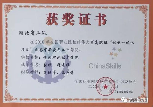 5月7日至9日,2018年全国职业院校技能大赛“机电一体化项目”、“数控机床装调与技术改造”项目在天津举行。受省教育厅委托,黄冈职院选派两支队伍代表我省参赛,并双双获奖。