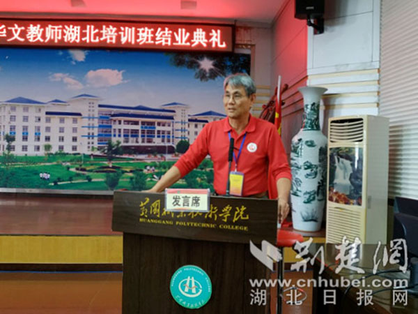 湖北省人民政府外事侨务办公室副主任冯细国对华侨说,大家都是黄皮肤、黑眼睛,中华民族是我们永远的根,博大精深的中华文化则是我们共同的魂,中华文化是世界优秀文化重要组成部分,希望各位老师当好中华文化的传播者,成为中外文化交流的使者。