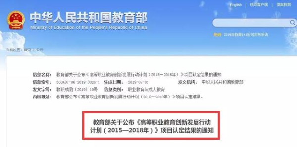 《高等职业教育创新发展行动计划(2015—2018年)》提出: