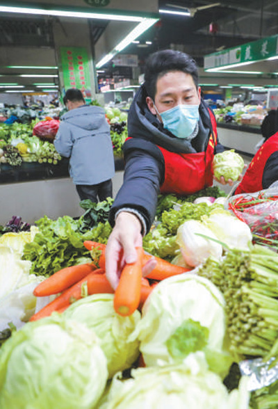 9日,浙江德清县武康街道代跑志愿服务队队员为群众购买蔬果。