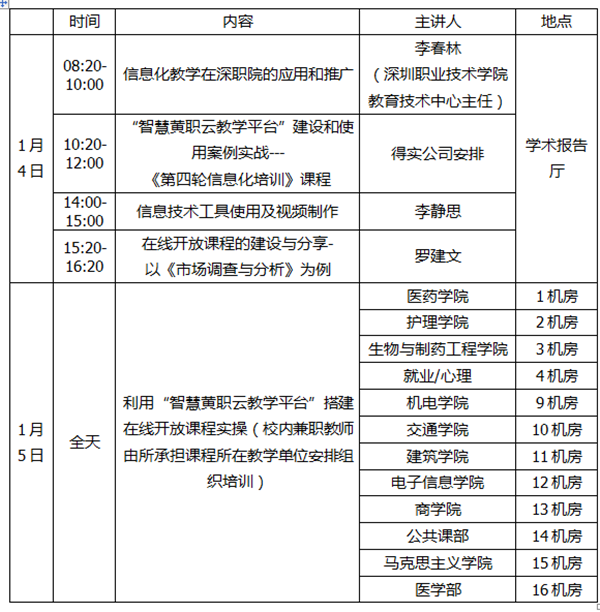 寒假教师在线开放课程建设和应用培训安排表