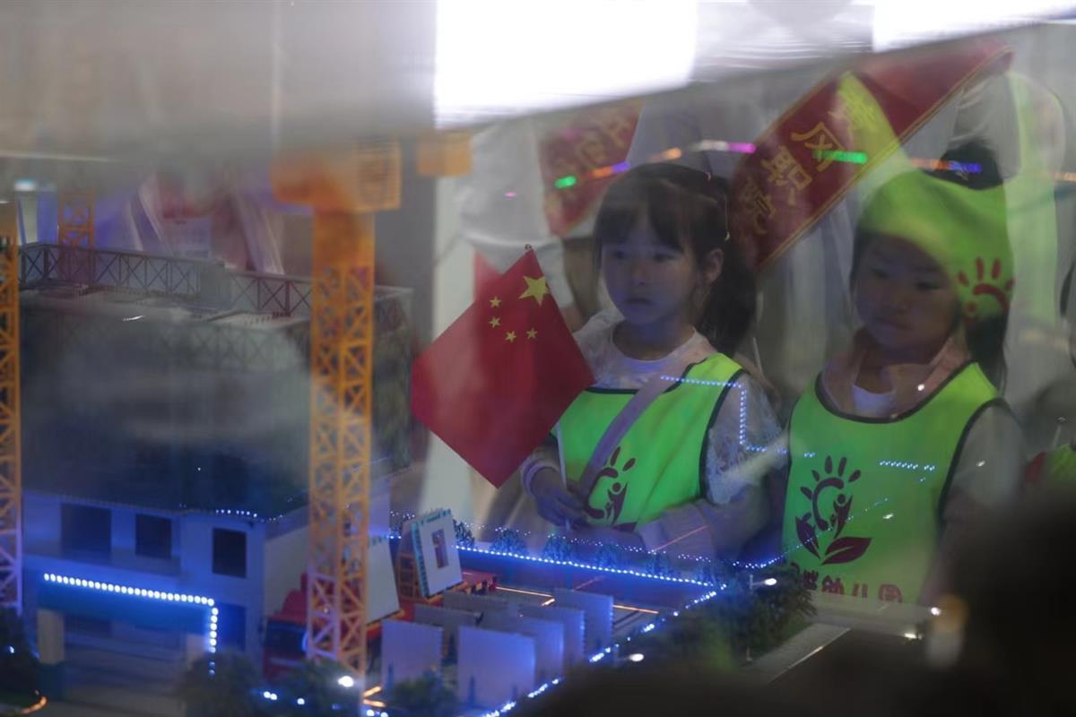 在展厅参观完,讲解员方梦同学还为孩子们介绍了党旗,引导他们认识党旗上的图案,不少小朋友举起手抢答,学习氛围十分浓烈。