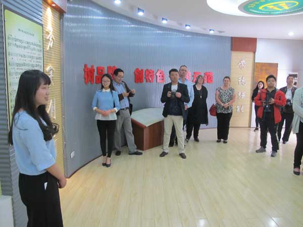 黄冈职院校长姜安心、副校长段院生和国际处黄爱良处长快步上前,热情与带队的华中科技大学国际学院负责人胡泓、高翔和来自新西兰坎特伯雷大学孔子学院等10位大、中小学校长一一握手,欢迎来自南半球的客人访问“国家首批骨干高职院校”的黄冈职院,继续参加“一带一路”孔子学院黄冈基地国情系列体验活动。