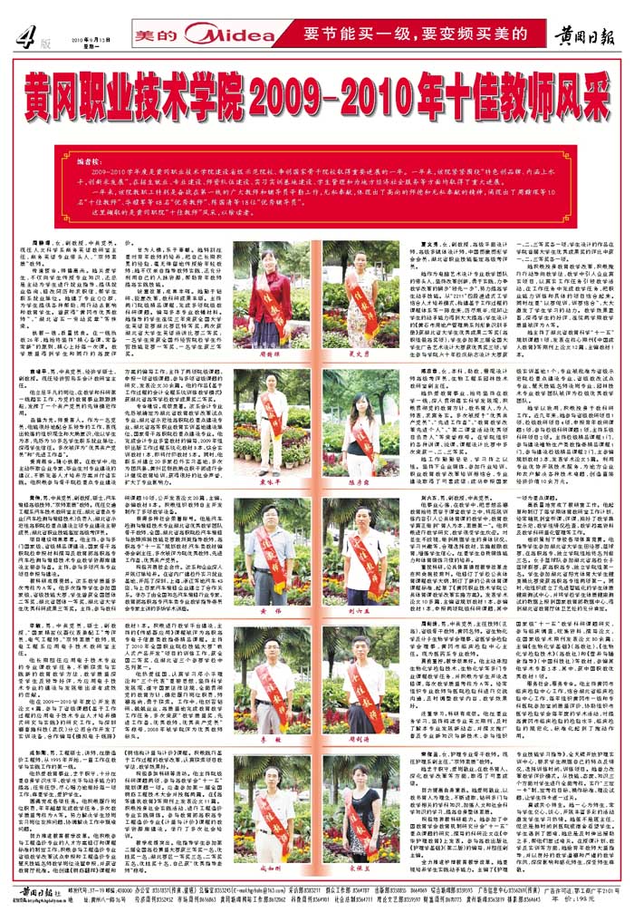 黄冈日报:XK星空2009-2010年十佳教师风采