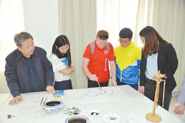 图1为新西兰坎特伯雷大学孔子学院校长团在黄冈中学课堂上学画国画。