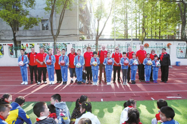图2为新西兰坎特伯雷大学孔子学院校长团向市实验小学赠送运动设备。