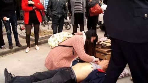 面对路边突然昏倒的拾荒老汉,一位路过的女孩急忙施救,跪地进行人工呼吸。事后,她婉拒老人家属的感谢,不留姓名,悄然而去。