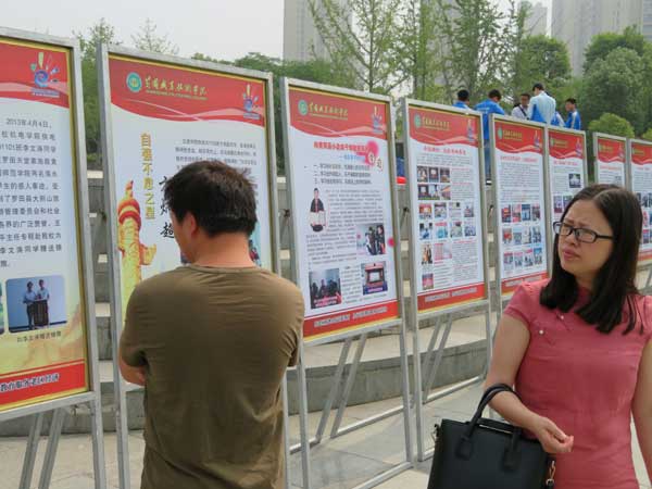 市民参观黄冈职院职业教育活动周宣传展板。吴远征 摄