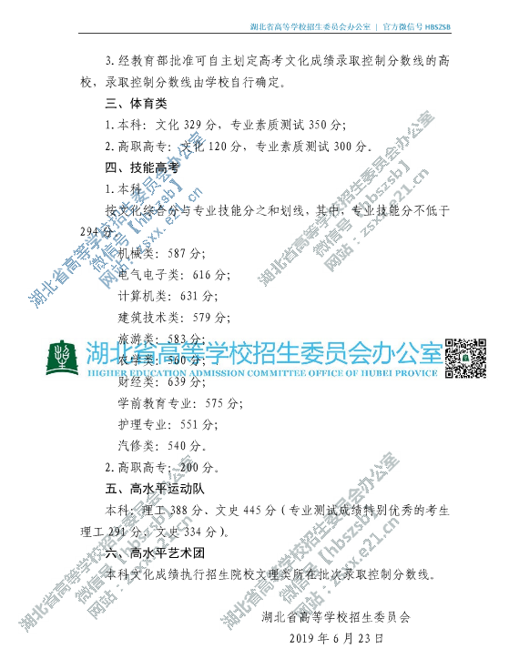 省招委关于湖北省2019年普通高校招生录取控制分数线的通知 省招委关于湖北省2019年普通高校招生录取控制分数线的通知 来源: 作者: 发布时间:2019-06-23 18:01:00 浏览次数: 次 【字体:小 大】 分享到: 【打印正文】